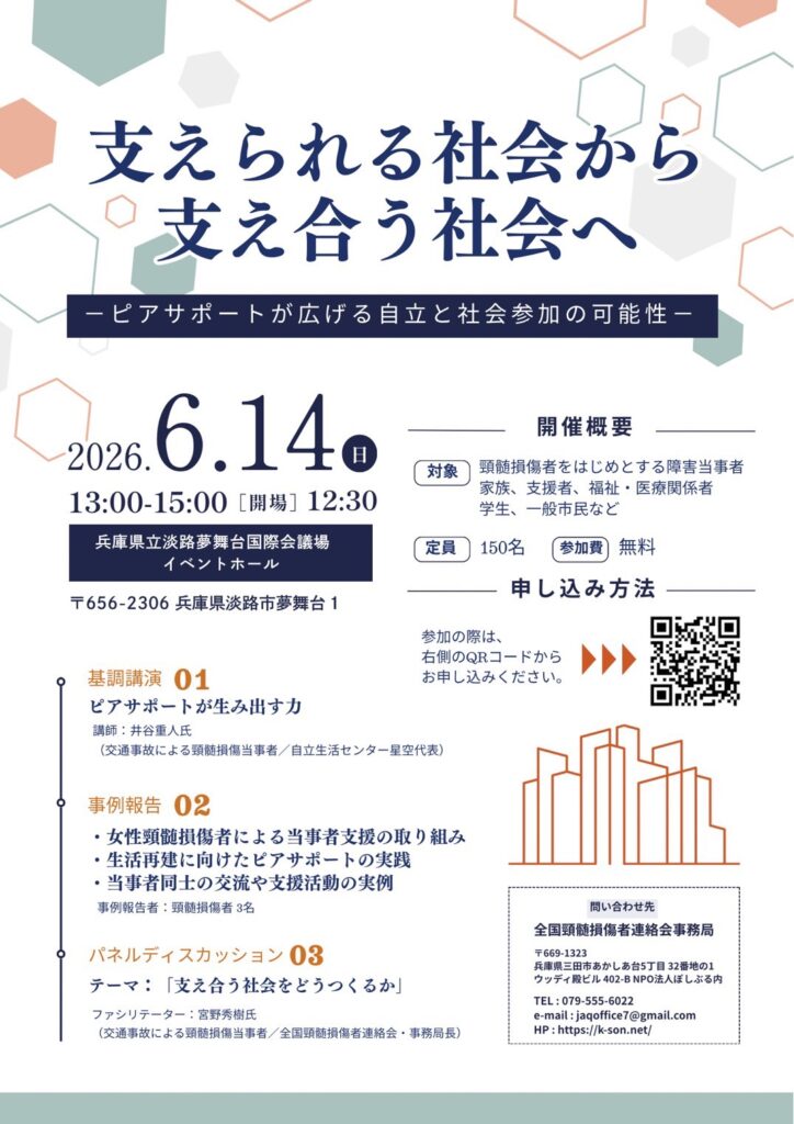 〒656-2306 兵庫県淡路市夢舞台1 - 対象 頸髄損傷者をはじめとする障害当事者、家族、支援者、福祉・医療関係者、学生、一般市民など